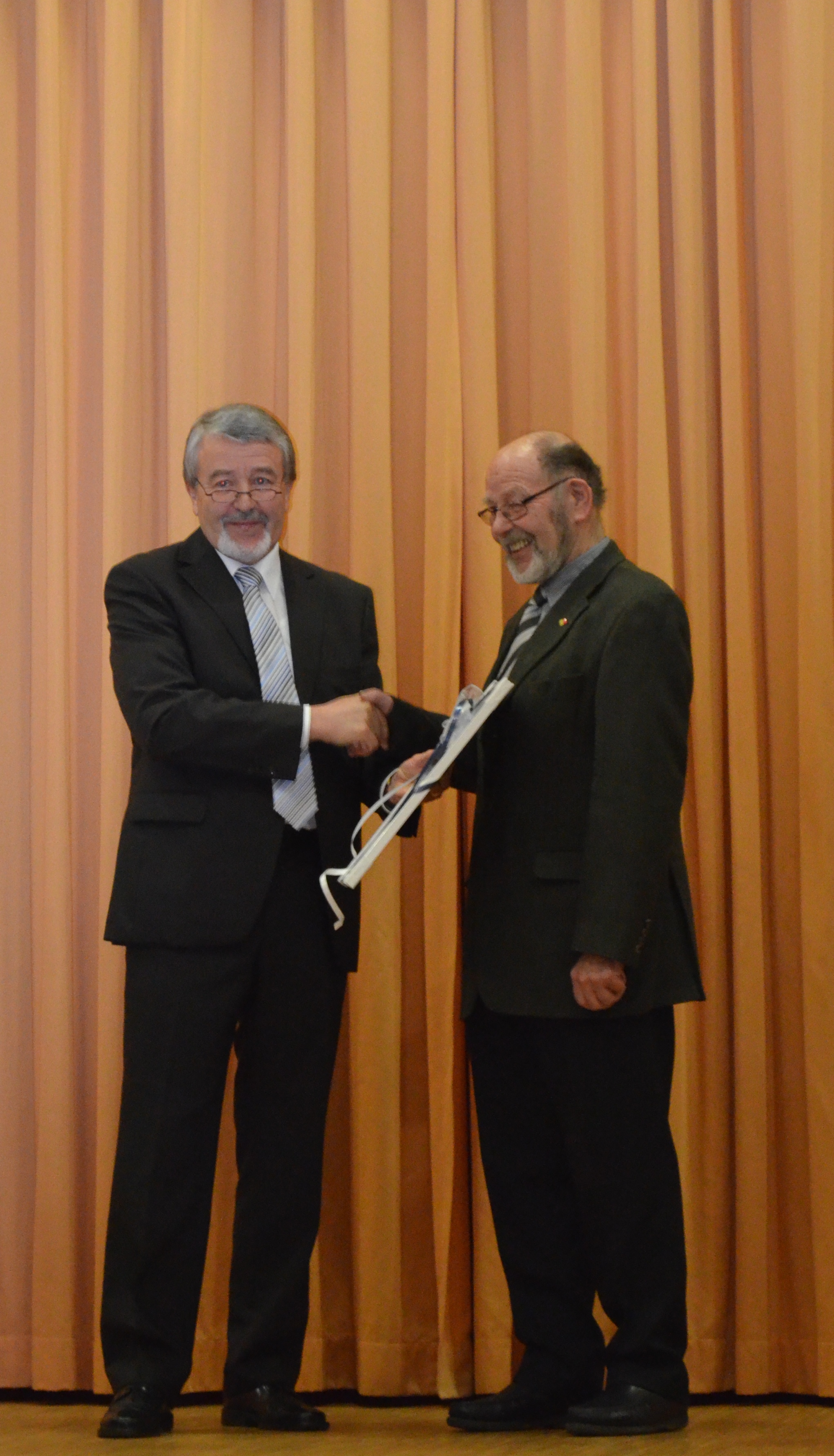 Aufsichtsratsvorsitzender Müller überreicht die Ernennungsurkunde.