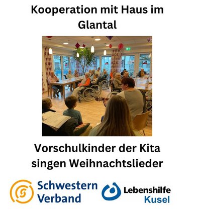 Heute war ein Teil der Vorschulkinder unserer Integrativen Kita zu Gast beim „Haus im Glantal“ in Altenglan. Die Kinder sangen gemeinsam mit den Bewohnern des Hauses Weihnachtslieder. Eine gelungene Kooperation für beide Seiten.