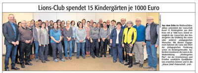Aus dem Erlös der Weihnachtspendenaktion unterstützt der Lions Club Kusel auch unsere Kita. Vielen Dank!