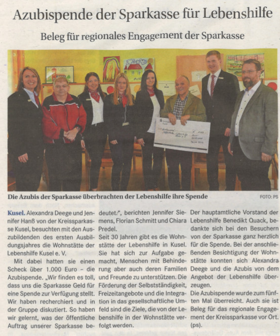 TOLLE Spende der Sparkassen-Azubis!