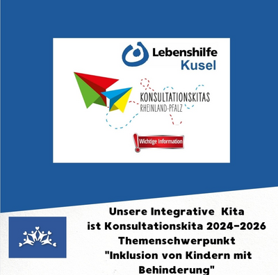 Tolle Neuigkeiten aus der rheinlandpfälzischen Landeshauptstadt Mainz. Die Integrative Kindertagesstätte der Lebenshilfe Kusel wird für den Zeitraum 2024-2026 Konsultationskita. Das Land Rheinland-Pfalz ernennt ausgewählte Einrichtungen zu sogenannten Konsultationskitas. In ausgewählten Bildungsreinrichtungen erleben pädagogische Fachkräfte, wie ein Schwerpunktthema in den Alltag integriert und umgesetzt wird, Ziel ist es, wichtige Impulse für die fachliche Arbeit zu erlangen. „Kitas untereinander vernetzen, sich austauschen und von der Praxis für die Praxis lernen“, so wird Bildungsministerin Stefanie Hubig zitiert. Das Programm stellt eine wertvolle Ergänzung zum bestehenden Fortbildungsprogramm dar. Insgesamt wurden 16 Kitas des Landes zur Konsultationskita ernannt. Diese werden, in den nächsten drei Jahren, mit je 15.000 Euro für den Zeitraum von 2024-2026 gefördert. Schwerpunktthema der Integrativen Kita der Lebenshilfe Kusel wird das Thema „Inklusion von Kindern mit Behinderung“. Weitere Informationen zur Projektgestaltung folgen.