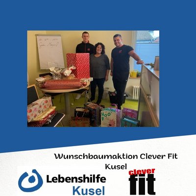Schöne Aktion kurz vor Weihnachten. Das Fitnessstudio „Clever-Fit“ aus Kusel startete Anfang Dezember eine Wunschbaumaktion zugunsten der Integrativen Kita der Lebenshilfe Kusel. Im Fitnessstudio wurde im Dezember ein Weihnachtsbaum geschmückt und mit den Wünschen der Kinder aufgestellt. Die Mitglieder des Studios konnten sich einen Zettel nehmen und die Wünsche, welche von den Kindern gesammelt wurden, erfüllen. Studioleiter Marc Gospodarek und Jannik Even überreichten die Mitgliedergeschenke am Donnerstag. Für die Kinder eine schöne Bescherung kurz vor dem sinnlichen Fest. Wir bedanken uns beim Team von Clever-Fit und deren Mitglieder für die schöne Aktion!